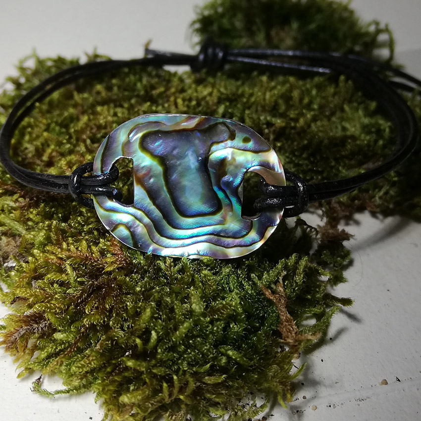 Sur commandeBracelet en nacre bleue de Tahiti avec son cordon en cuir.